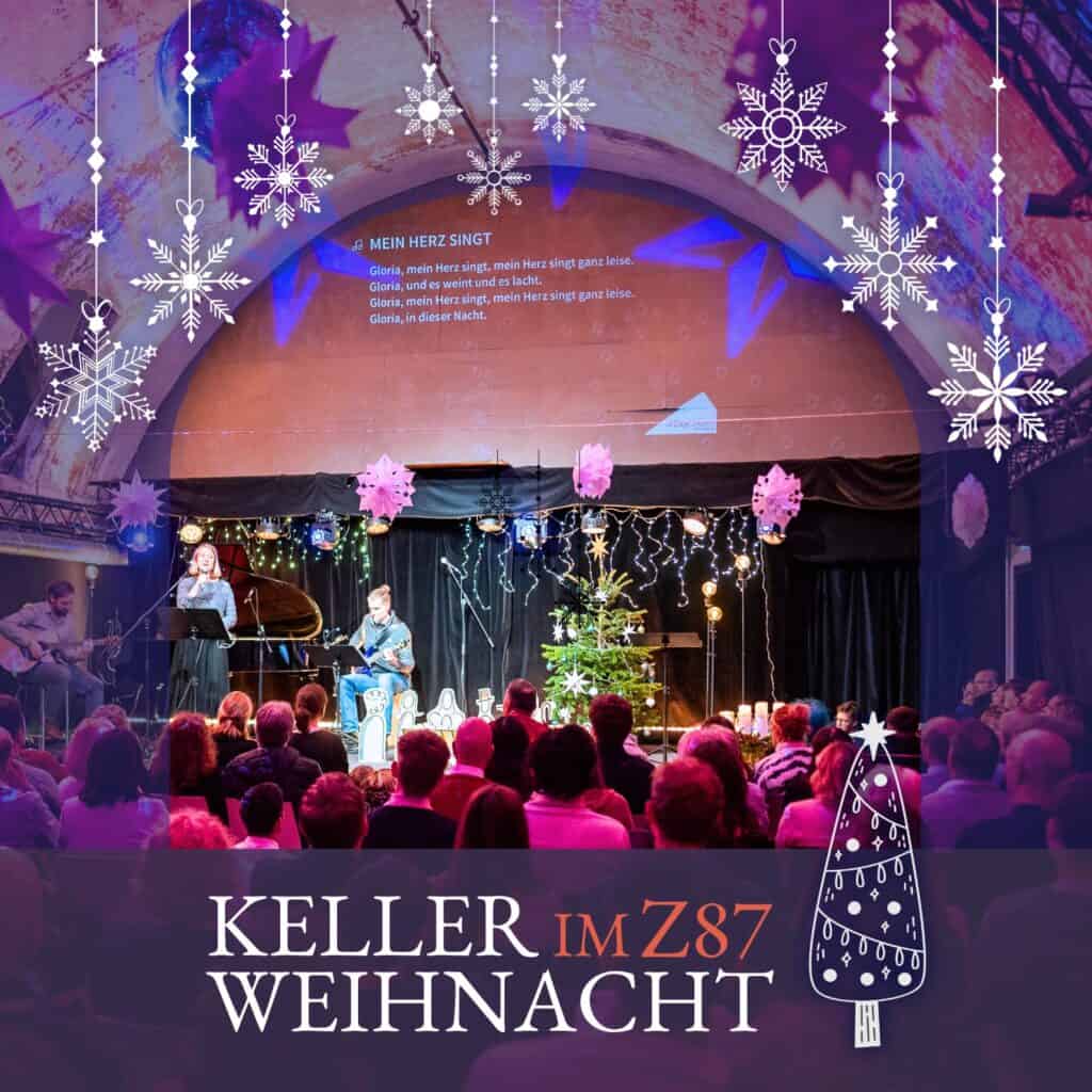 An Heiligabend verwandelt sich das Z87 wieder in eine Keller-Weihnacht. Vor dem Z87 begrüßt dich ein Mini-Weihnachtsmarkt mit Glühwein und einer Aktion für Kinder. Und